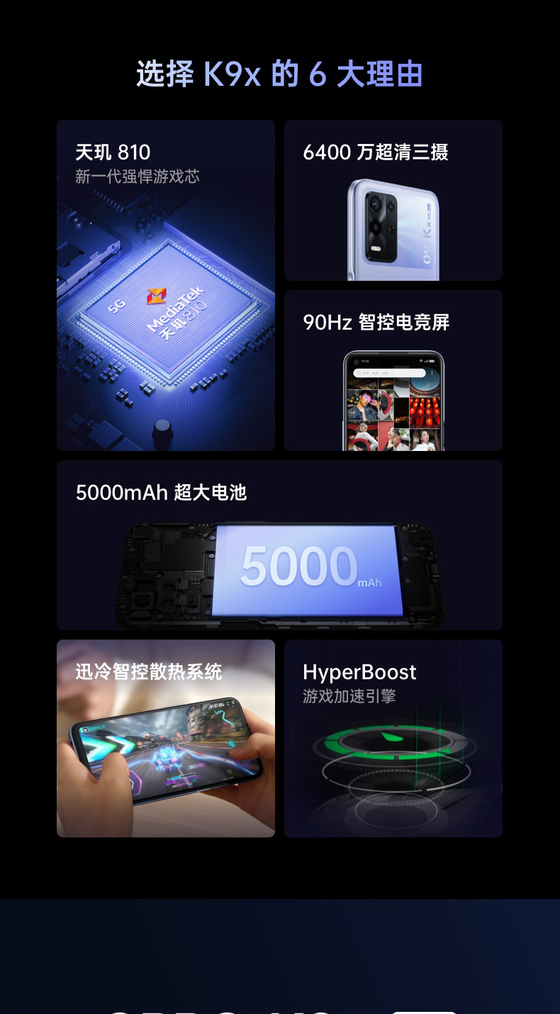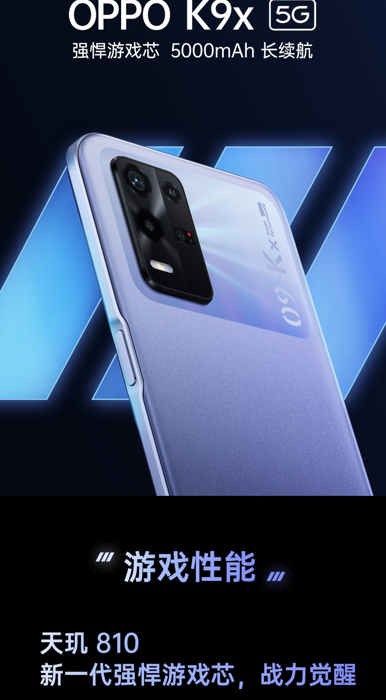 OPPO K9x 8GB+128GB 银紫超梦 天玑810 5000mAh长续航 33W快充 90Hz电竞屏 6400万三摄 拍照5G手机oppok9x