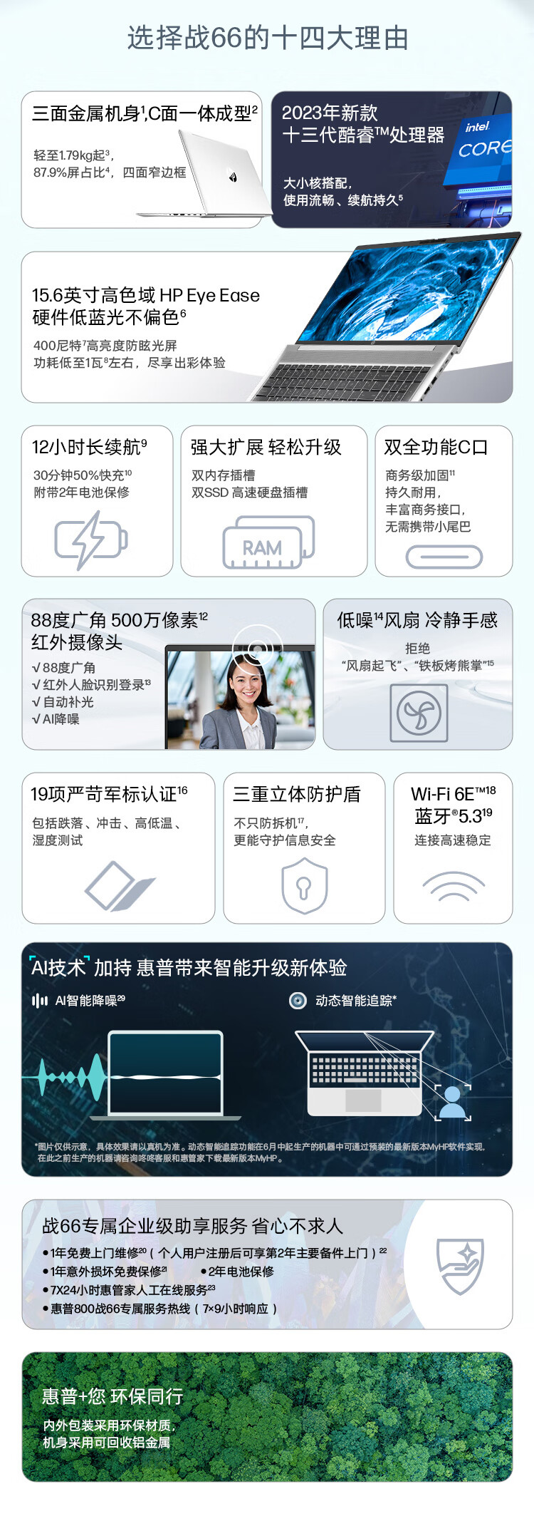 惠普(HP)战66六代2023酷睿15.6英寸(英特尔13代i5-1340P 16G 1T 长续航 高色域低功耗 AI新体验)高性能轻薄笔记本电脑